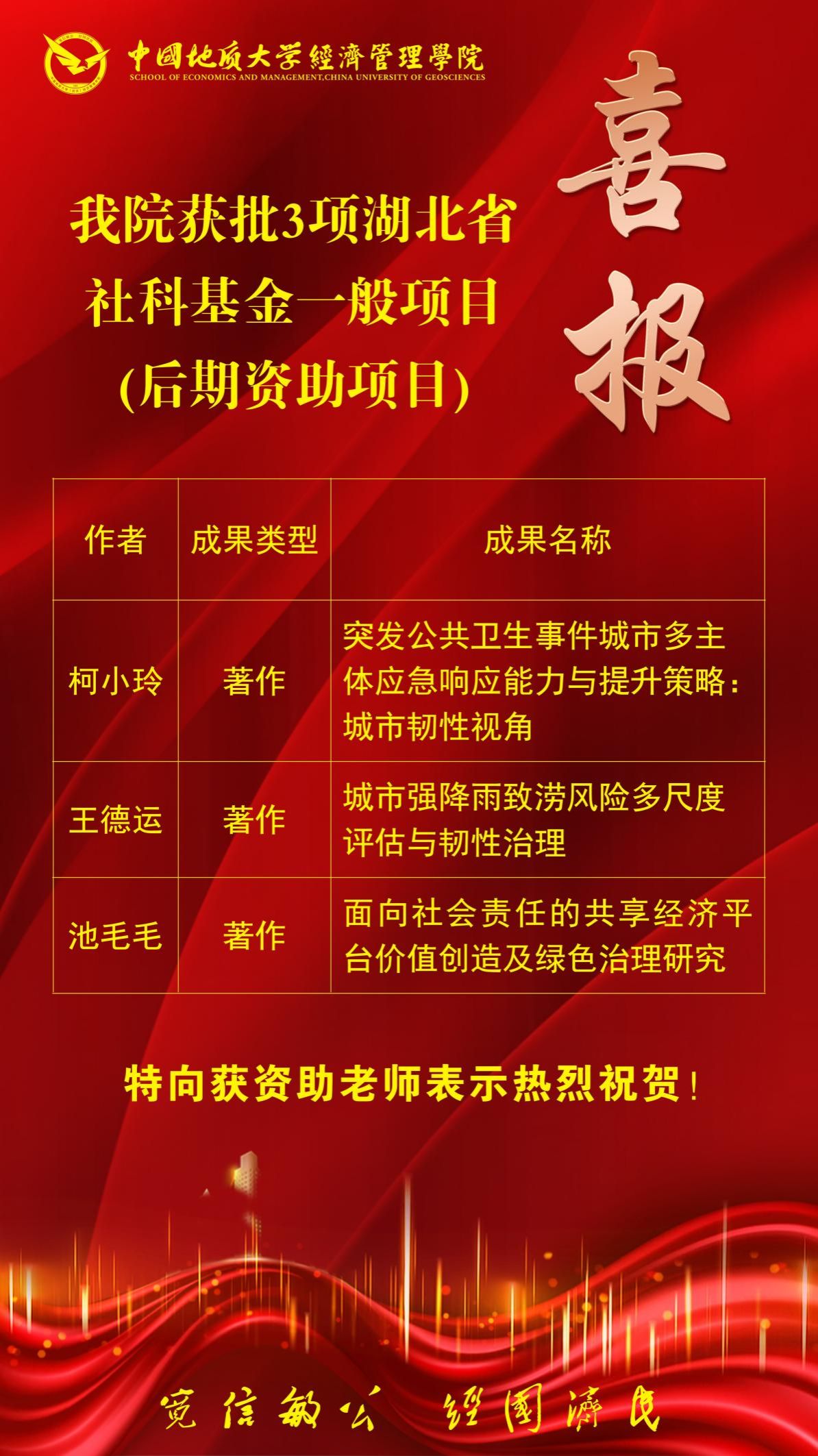 (通讯员 胡松琴)11月14日,2023年度湖北省社科基金一般项目(后期资助项目)拟立项名单公布,羞羞漫画 柯小玲、王德运、池毛毛三位老师申报的课题项目成功立项,羞羞漫画 科研成果再次喜获丰收。
