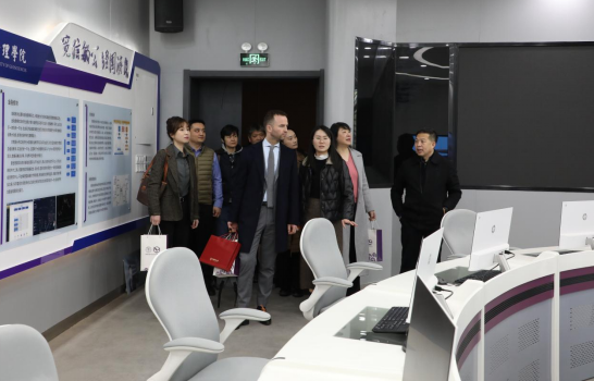 会后,党委书记杨昌锐带领法方代表参观了学院新文科实验室并合影留念。