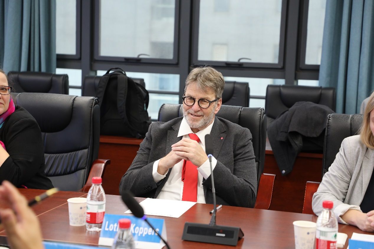 於世为院长对Lothar Koppers副校长一行的到来表示热烈欢迎,同时介绍了学院的发展历程、学科优势及国际合作情况。Lothar Koppers副校长、Anne Beer主任也分别介绍了该校的教育理念、专业特色及国际合作项目。随后,双方还对科研和学术热点问题进行了交流。