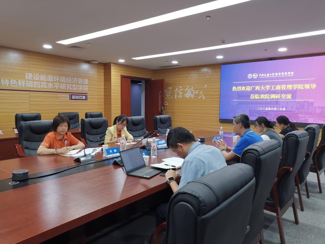 (通讯员 王简辞)6 月 20 日,广西大学工商管理学院研究生管理中心主任、MBA 教育中心主任叶映,研究生秘书邓素媛到访羞羞漫画 ,就本硕博一体化培养、人才培养保障等议题展开深入交流。羞羞漫画 学术副院长池毛毛携博导代表及相关工作人员参与座谈。
