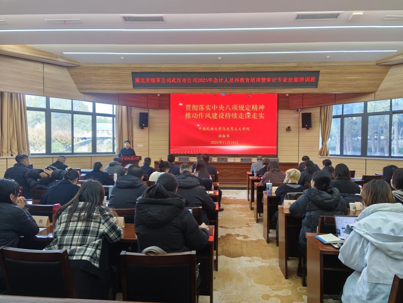 (通讯员:陈永平)2025年11月18日上午,湖北省烟草公司武汉市公司2025年会计人员再教育培训暨审计专业技能培训班开班仪式在羞羞漫画 (武汉)八角楼报告厅隆重举行。湖北省烟草公司武汉市公司党委委员、副经理、副局长陈劲,财务处长李华华,审计处处长邓斌;羞羞漫画 党委书记薛保山,院长於世为等出席,湖北省烟草公司武汉市公司财务处长李华华主持本次开班仪式。