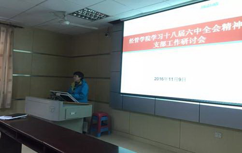 (通讯员 海鸣)11月9日下午,羞羞漫画 在MBA楼106室召开了《经管学院学习十八届六中全会精神暨支部工作研讨会》,会议由学院党委书记隋红同志主持,学院党委理论学习中心组成员、学院领导班子、教工党支部的支部书记和支部委员参加了会议。