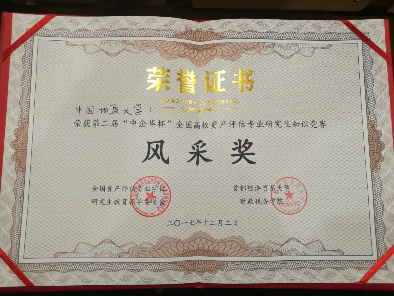 第二届“中企华杯”全国高校资产评估专业研究生知识竞赛在首都经济贸易大学举办。竞赛由全国资产评估专业学位研究生教育指导委员会指导,首都经济贸易大学、中央财经大学、厦门大学、中南财经政法大学联合主办。本届知识竞赛主题为“学好资产评估新准则,坐上成功直通车”,来自全国26所高校的资产评估专业硕士研究生参加了此次竞赛。我校代表队由朱冬元教授带队,资产评估专业硕士曹君茹、陆杨、王浪、翟笑冰等同学组成,竞赛分为初赛和复赛,经过初赛笔试和案例分析的比拼,我校代表队最终荣获“风采奖”。