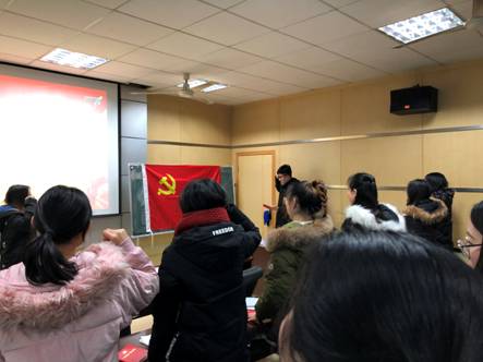 2018年12月29日下午14:00,羞羞漫画 2018级管理班硕士研究生党支部于学校北区MBA楼106教室开展了主题为“学习习近平总书记在庆祝改革开放40周年大会上的重要讲话精神、《中国共产党支部工作条例(试行)》及学习“弘扬爱国奋斗精神””的主题党日活动。本次活动由支部组织委员伍青青同志和宣传委员程仕菊同志主持,支部应到党员33人,实到26人,事假7人,有5名积极分子参与学习。