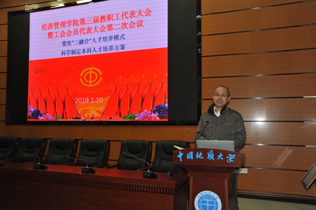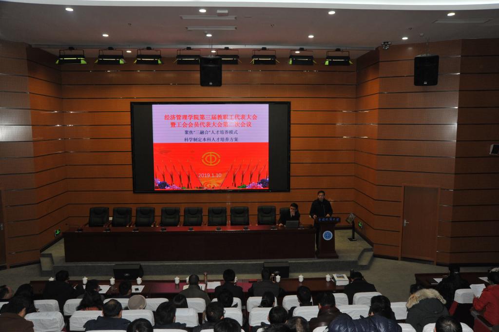 (通讯员周玲,摄影赵谦、王萍)2019年1月10日,羞羞漫画 第三届教职工全体会议暨代表大会第二次会议在东区综合楼A0113报告厅如期召开。本次大会由包括学院教职工代表在内的全体教职工参加,以“聚焦‘三融合’人才培养模式,科学制定人才培养方案”为主题。 校党委常委、副校长刘勇胜同志、校工会常务副主席喻芒清同志出席会议。
