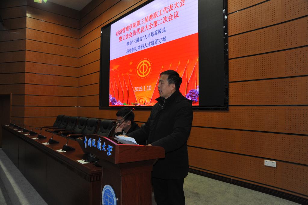 学院分工会主席王萍同志的《新起点、新气象、新成效》工作报告教学副院长肖建忠同志向大会作学院教学改革与大类培养方案专题报告。