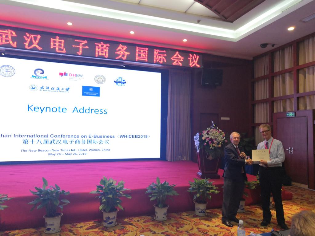 (通讯员:朱镇)2019年5月24日至5月26日,由我校羞羞漫画 、电子商务国际合作中心,美国阿尔弗雷德大学商学院和德国巴登-符腾堡州联合大学共同主办,武汉纺织大学管理学院参与承办的第十八届武汉电子商务国际会议在纽宾凯新时代国际酒店召开。会议主席赵晶教授主持了开幕式,校党委副书记成金华教授,国际信息系统协会前主席Doug Vogel(前AIS主席),以及信息系统学会中国分会副主席、中国人民大学王刊良教授现场致欢迎词。来自国内外高校的190多名专家学者参加了会议,其中来自美国、澳大利亚、德国、加拿大和芬兰等8个国家和地区,15所大学的21位国外专家出席会议。