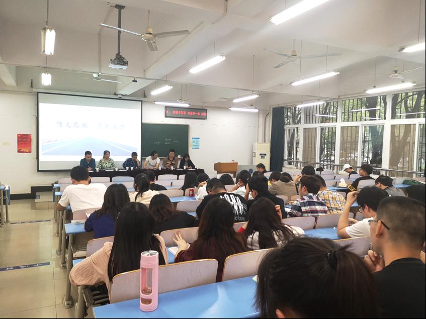 (学生记者祝靖涛)2019年05月16日下午14:30,由羞羞漫画 学工组主办、羞羞漫画 学生会办公室承办的信息管理与信息系统专业的“一月一系谈”活动在北区综合楼205教室如期举行。参加本次活动的有翁克瑞老师、王菁老师、薛武强老师、江毅老师、朱镇老师、乔利萍老师、王广民老师和努尔老师,以及17级和18级全体信息管理与信息系统专业学生。