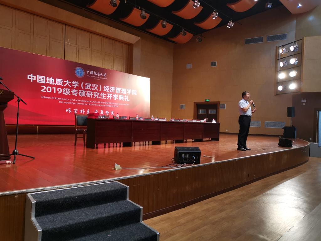 最后,杨昌锐书记做总结发言,为2019级专硕新生讲解院校的发展史,告诫同学们要坚持“艰苦朴素,求真务实”的校训精神,牢记院训“宽信敏公,经国济民”,努力成为能够担当民族复兴大任、品德高尚、基础厚实、专业精深、知行合一的高素质人才。希望大家来地大好好学习,做一个对国家、对民族、对自己负责的人;做一个有爱心、有善心、有孝心的人;做一个感恩父母、感恩他人、感恩社会的人。