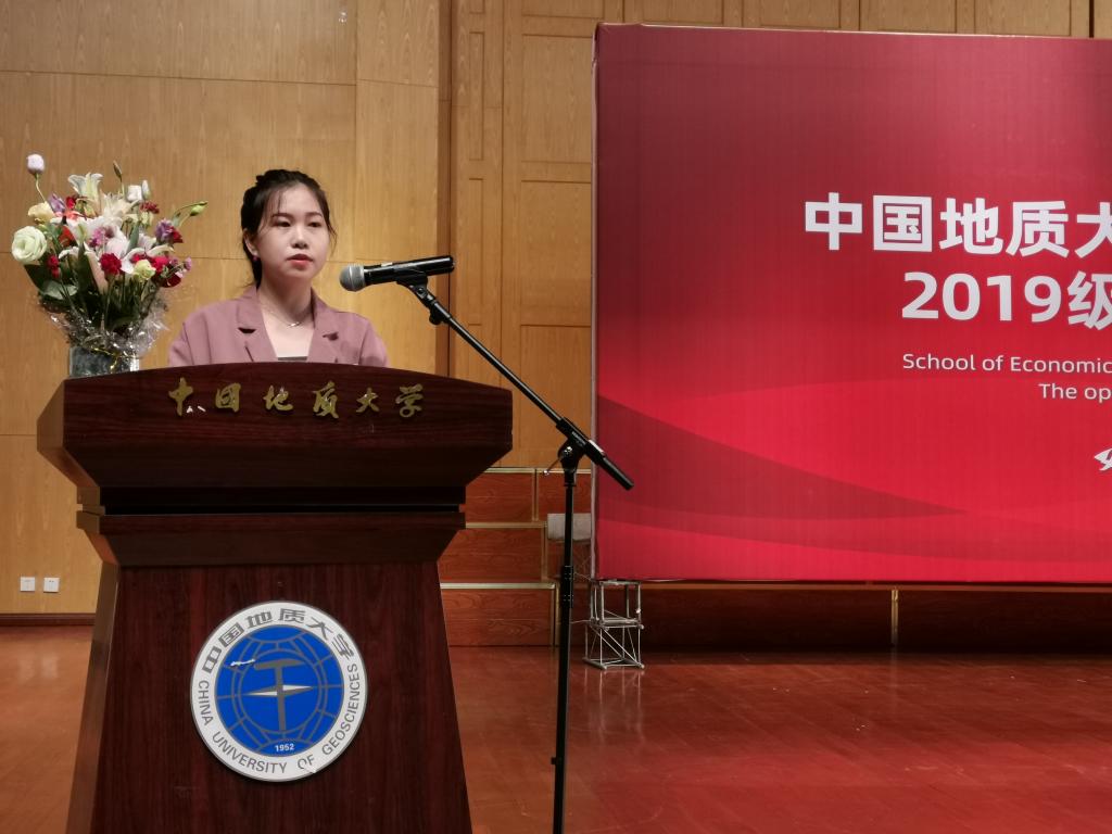 专硕新生代表MPACC叶胜男,她提出了以下两个问题给我们思考并作出了浅显回答:第一,为什么选择深入学习经管类学科?第二,作为新时代的地大人我们应该怎么做?“艰苦朴素 求真务实”的校训告诫我们“板凳要坐十年冷,文章不写一句空”学术道路上要耐得住寂寞,稳得住心性。唯有从研究者寻求真理,从实践中赢得价值,方能从追求中获得进步。
