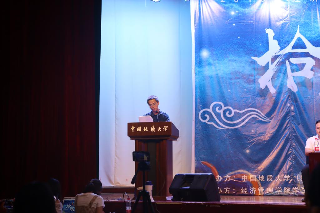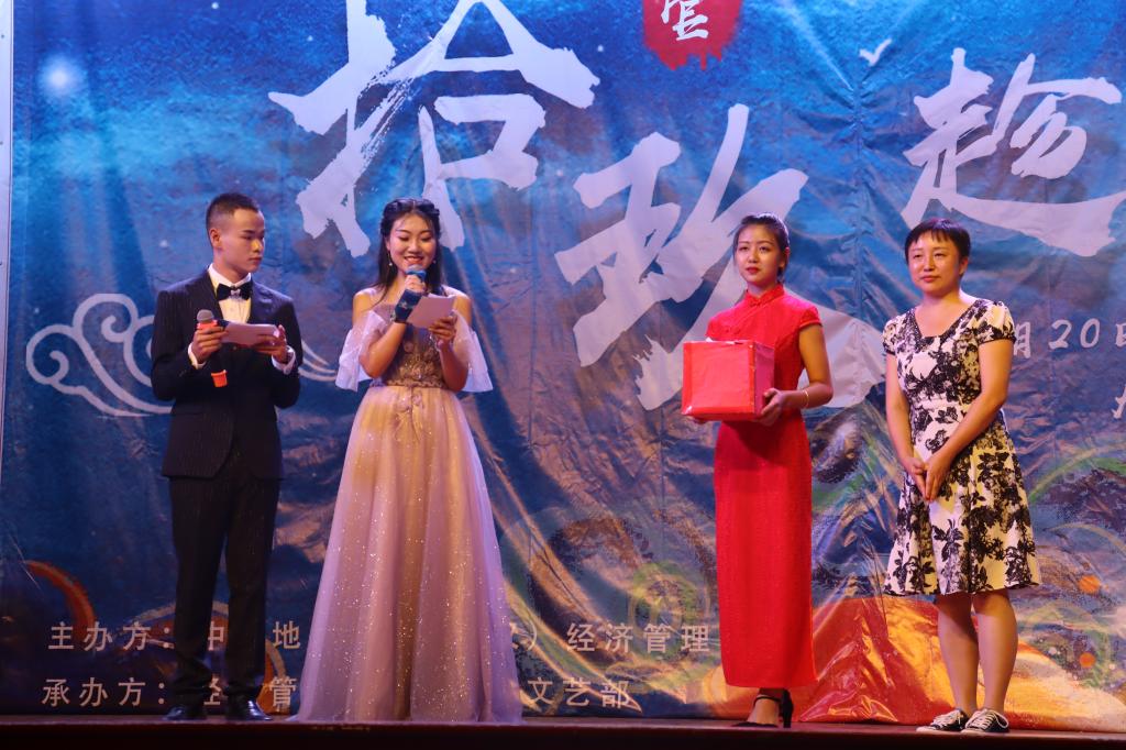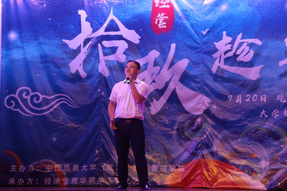 回校招聘的校友,2005级经济学专业本科生,招商银行黄石分行行长助理刘杨为同学们分享经历,鼓励大家努力向前。沈波老师在师生的强烈邀请下即兴献唱,一首《秋意浓》再次点燃全场。晚会的最后,学院主持人队以清朗醇厚的嗓音吟诵《追梦地大》,全场起立齐唱《歌唱祖国》,为晚会添上完美收官之笔。