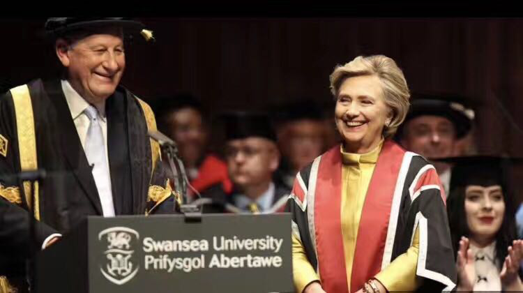 2016年7月5日英国查尔斯王子出席斯旺西大学海湾校区的开幕典礼;2017年3月21日,英国首相特蕾莎·梅到访斯旺西大学,为大学和西南威尔士地区引入13亿英镑的投资;2017年10月14日希拉里·克林顿访问斯旺西大学并获得法学院荣誉博士学位。