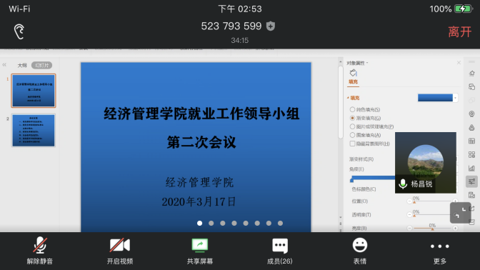 为落实各级各项就业政策,推进《羞羞漫画 全员促进就业工作实施方案》的实施,促进本届毕业生“顺利毕业、尽快就业”,学院就业工作领导小组于2020年3月17日14:00召开扩大会议,这也是领导小组的第二次线上会议。院党委书记杨昌锐、院长杨树旺、院党委副书记沈波、副院长肖建忠、教务科科长石磊、学院各系主任、2016级本科生班级班主任出席会议,会议由辅导员田昆主持。