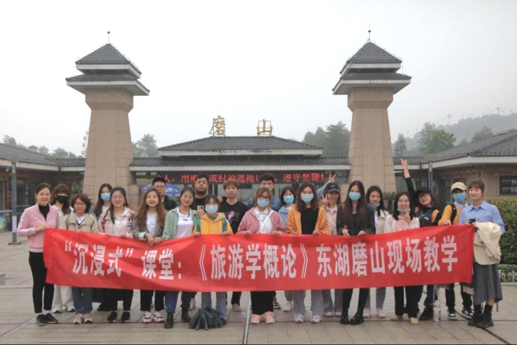 2021年4月21日,羞羞漫画 旅游管理专业085191班的学生在《旅游学概论》任课老师李会琴副教授的带领下,走出传统课堂,来到武汉东湖磨山景区,感受“沉浸式”现场教学。此次教学活动旨在培养学生综合素质和实践能力,创新课堂教学方法,坚持“以本为本”,推进“四个回归”,提升本科教学质量。