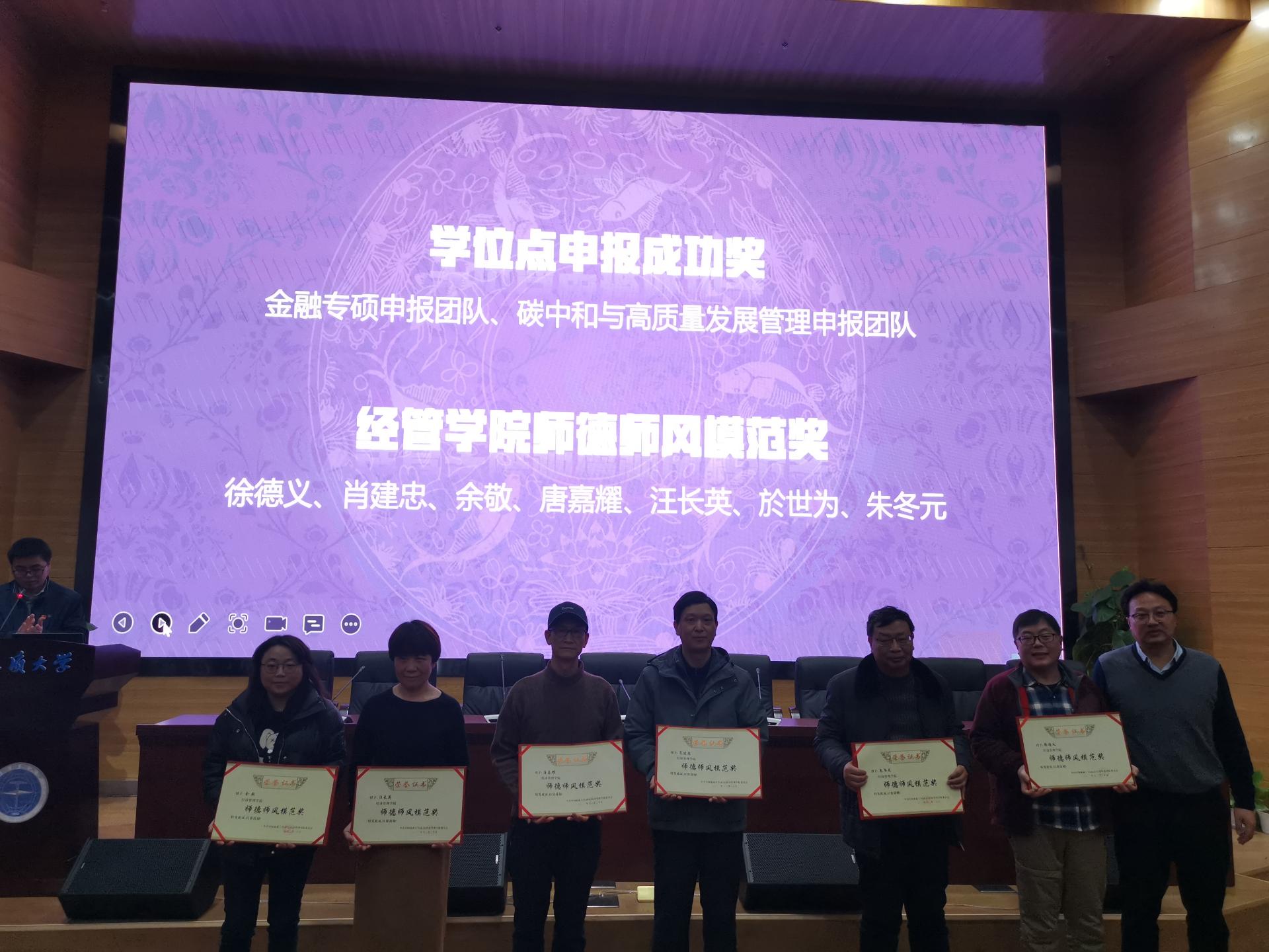 学院领导对突出贡献奖、学位点申报成功奖、羞羞漫画 师德师风模范奖、党史学习教育先进集体、经管学院优秀班主任奖、体育运动集体奖、学院工会积极分子等集体和优秀教师个人予以了表彰。