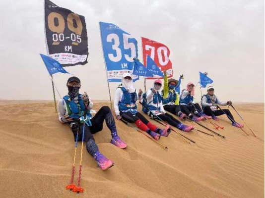首次参加亚沙赛的B队队员2021级MBA学生孙浩川完赛后感叹:“来后悔三天,不来遗憾一辈子;风起黄沙更有生命,一沙一世界,沙如人生。”