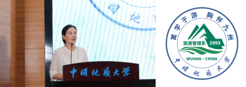 旅游管理系主任李会琴老师发布旅游管理系LOGO并宣布比赛开始。旅游管理系LOGO为圆章式设计,构图简洁,内蘊寓意丰富。LOGO以蓝色和绿色为主题色,正上方放置“寓学于游,胸怀九州”,为旅游管理系理念口号,正下方放置学校校名,中心放置山、水元素图案,寓意旅游与山水文化、“绿水青山就是金山银山”、地学旅游景观等,外圈为象征蓝色地球和呼应羞羞漫画 校徽的“地大蓝”,并置入了旅游管理系成立于1993年、位置在武汉等方面的信息。她指出,旅游管理系LOGO的设计和创意,是旅游管理建系30年来教学育人的实践结晶,其发布和正式启用必将在增强专业凝聚力,加强专业文化建设,促进旅游管理专业办学理念及育人特色传播方面发挥积极作用。