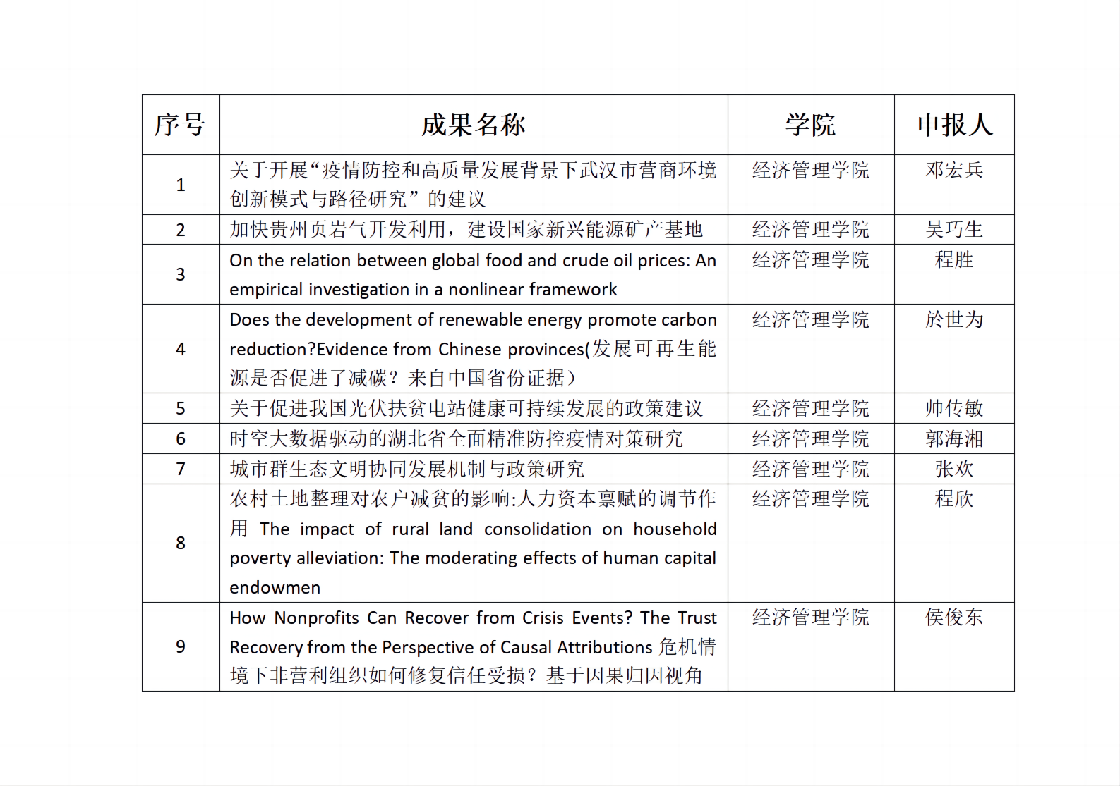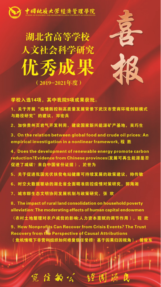 2019-2021年度湖北省高等学校人文社会科学研究优秀成果入选名单