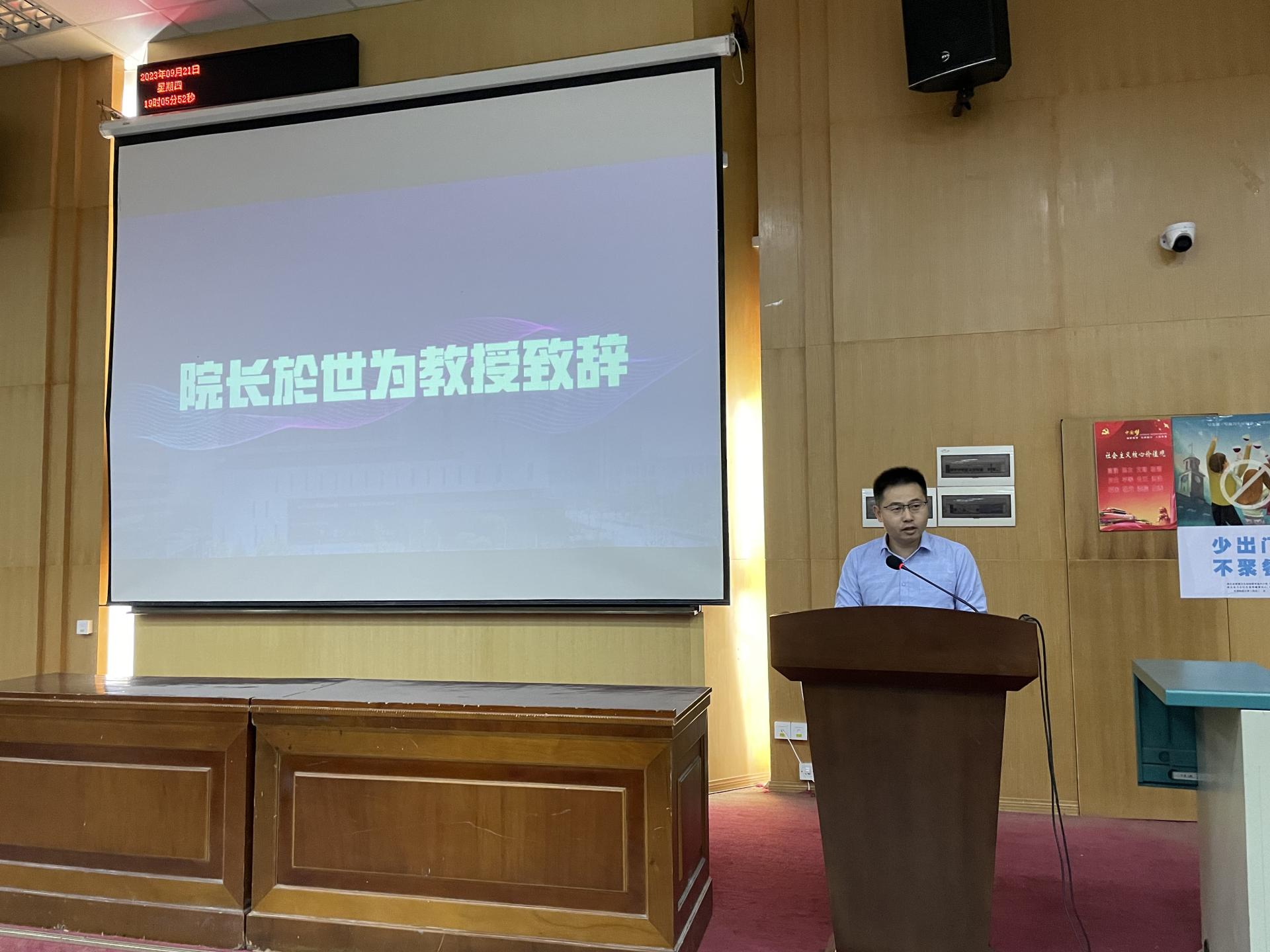 典礼第八项,院党委书记杨昌锐为全体新同学讲授开学第一课——《经管学院文化》。他从学院院训、院徽、院风、使命、愿景五个方面对学院文化进行深入解读,并与新生分享了“学习工作十观”。希望全体新生能够在良好的学院氛围下,努力拼搏进取,不断追求卓越,早日成为“品德高尚、基础厚实、专业精深、知行合一”的地大人。