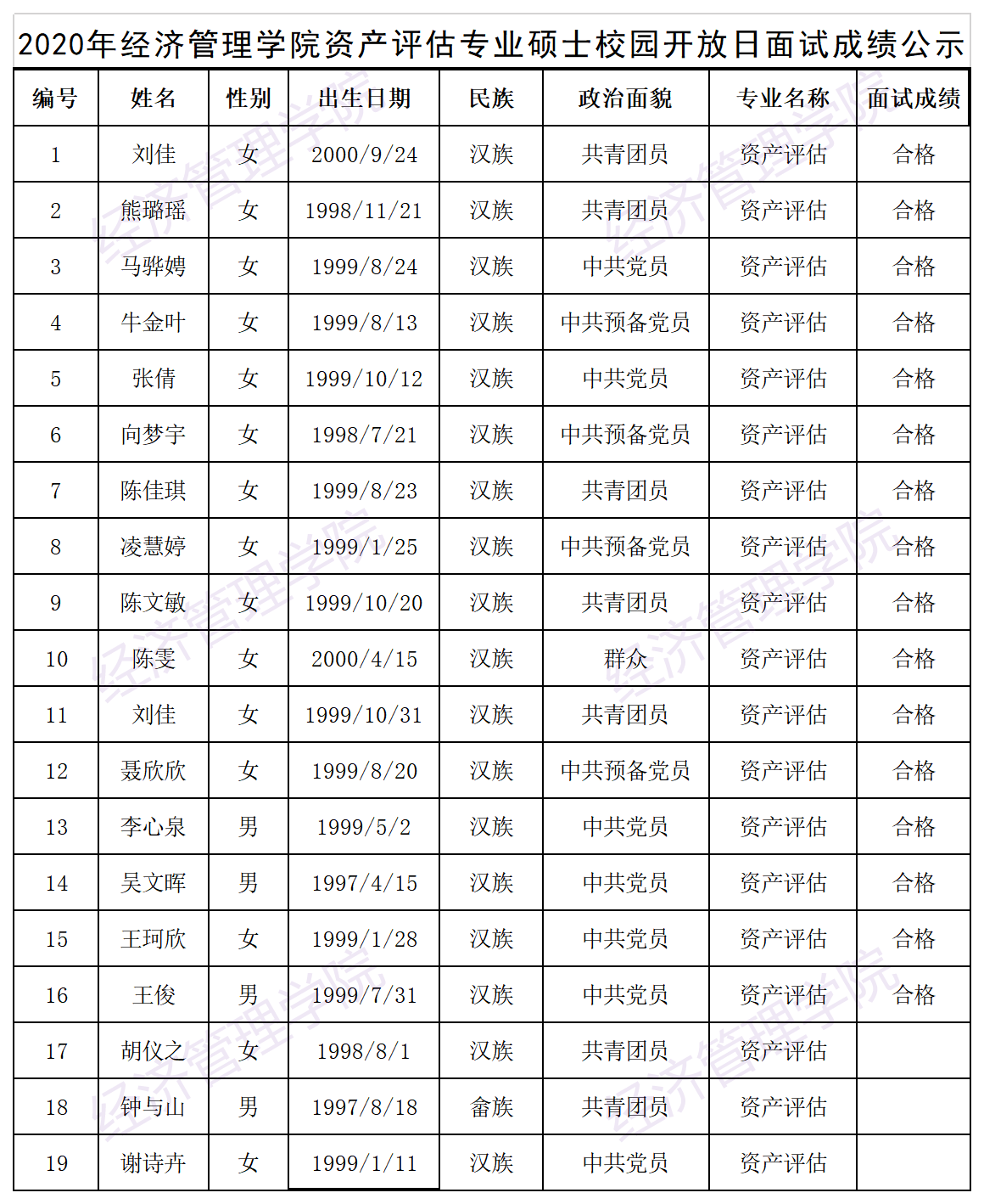 2020年羞羞漫画 资产评估专业硕士校园开放日面试成绩公示