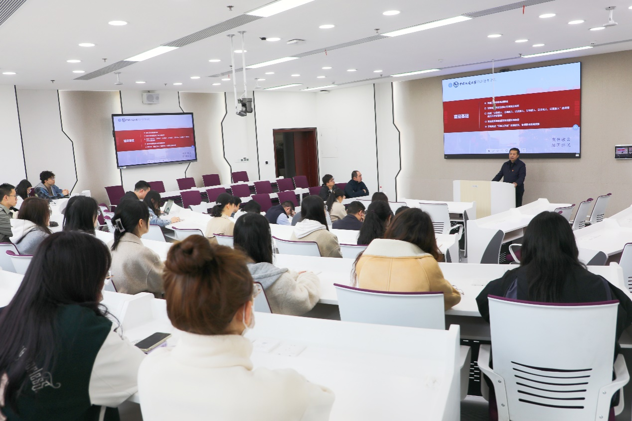 会上,杨昌锐就全国党建工作标杆院系培育创建工作进行部署,他从学院党建工作体制机制、学院党委的政治核心作用、学院思想政治工作新格局、基层组织建设的高质量发展态势、学院党政“五融工作法”取得实效等五个方面全面介绍了学院入选全国党建工作标杆院系创建单位的建设基础。他指出,学院党委接下来将在党建“双创”工作中以习近平新时代中国特色社会主义思想为指导,全面贯彻党的二十大精神和全国高校思想政治工作会议精神,按照“重点任务指南”要求,以党的“六大建设”为着力点,以“一融双高”为组织使命,深入推行党政一体“五融工作法”,全面建设“五个到位”和“七个有力”,创新实施党建“雄鹰工程”,努力打造新时代高校党建示范标杆学院,为学院发展提供有力的政治保障、思想保障和组织保障。