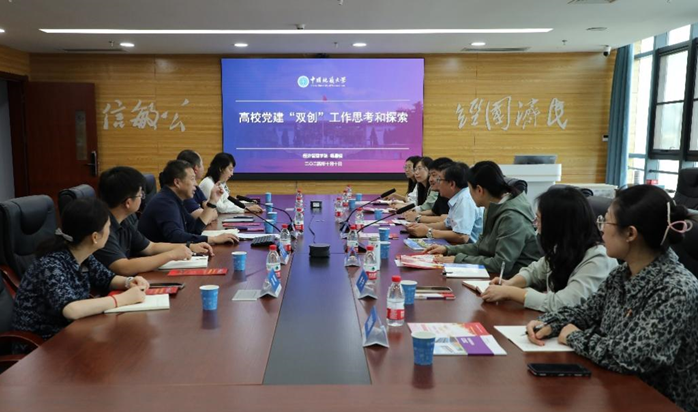 在交流环节,双方参会人员一对一展开了热烈而深入的讨论。大家针对党建与学生工作各抒己见,分享各自学院在党建引领学生成长、党组织建设、党员教育管理等方面的经验和做法,互相学习借鉴。