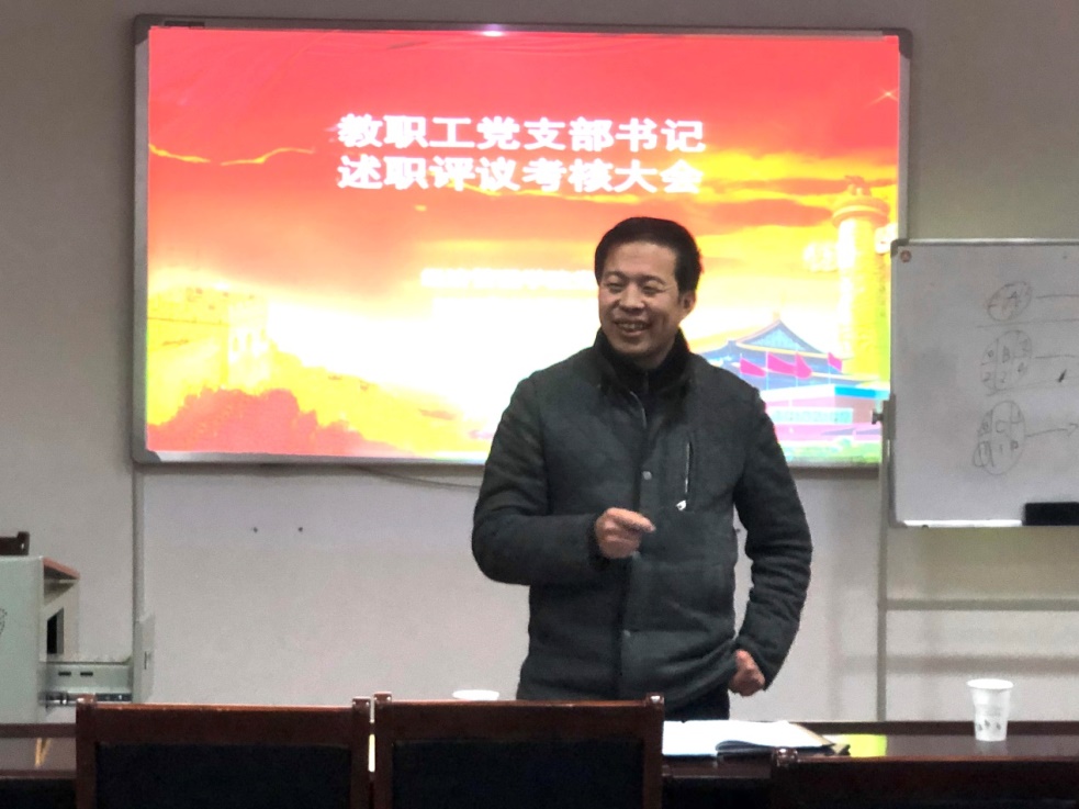 教职工支部书记述职评议会上,各教职工支部书记全面对标教育部党组“对标争先”建设计划中 “七个有力”建设任务与要求,围绕本支部一年来教育党员、管理党员、监督党员、组织师生、宣传师生、凝聚师生和服务师生等方面工作进行了详细汇报。学院党委书记杨昌锐同志高度肯定了各支部在2018年度取得的成绩,同时指出了各支部之间在支部建设、作用发挥等方面存在的发展不充分和不平衡问题,并希望在课程思政建设、人才引进力度、工作创新方面不断加强,结合2019年重点目标任务,切实将党建和业务紧密结合,充分发挥教职工党支部的战斗堡垒作用,凝心聚力,共促发展。
