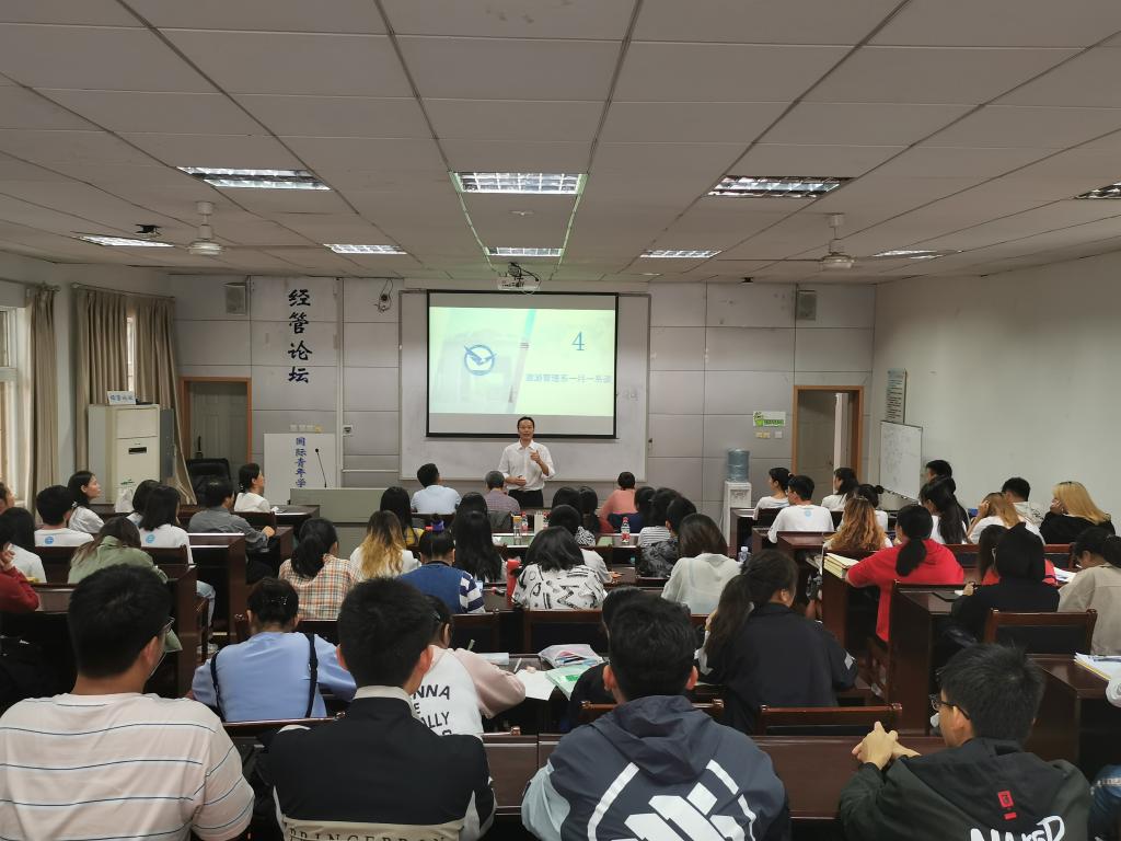 旅游管理系与会老师耐心解答2019级新生同学们关于专业选择、攻读研究生、就业领域、未来发展四个主要方面的问题,让同学们对今后的专业方向有了更加清晰的了解。在整个互动答疑过程中,同学们踊跃向老师提出自己的困惑,现场气氛轻松活跃。旅游管理系主任肖拥军老师做大会总结发言。他指出此次活动是旅游管理系“一月一系谈”的重要活动之一,旨在用榜样的力量教育和引导学生,以高尚的道德情操感染学生。活动拉近了师生间的距离,有效加强了师生之间,以及各年级学生之间的沟通交流,对学生今后的专业选择和成长成才都有重要意义。