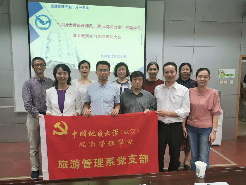 2019.10.10下午,羞羞漫画 旅游管理系党支部邀请学院学工组,共同组织旅游管理系085181班、经管学院08s197班,以及旅游管理系2019级研究生,在MBA208召开了“弘扬优秀师德师风,展示榜样力量”专题学习暨北戴河实习总结表彰大会。参加本次活动的有经管学工组赵家玮老师,旅游管理系李江敏、肖拥军、李会琴、鄢志武、唐嘉耀、梁玥琳、庄小丽、张俊霞、董淑霞等10位老师。