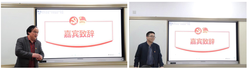 校图书馆馆长徐世球教授(左)、羞羞漫画 党委副书记李少杰老师(右)为活动致辞