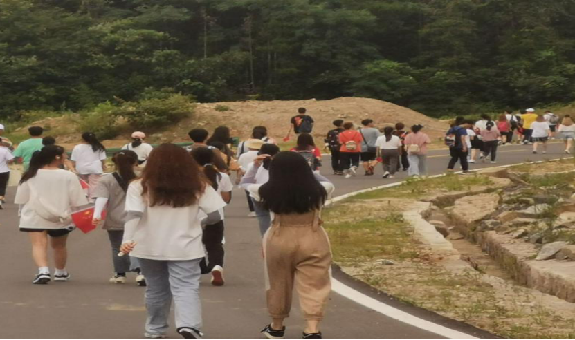 沿着红色道路一路前行,我系师生顶烈日步行3公里,重温红旅绿道,一路向西,直抵大山深处,落脚于乡间小舍,忆苦思甜体验红军餐。经工作人员介绍,革命期间,红二十八军伤病员护理所安顿伤病员,老百姓对重病伤员给予特殊照顾,七拼八凑才能做点火烧粑、锅巴粥等食物,为伤员调养身体。一份红军餐包括一份火烧粑、一碗锅巴粥、两份炒野菜,粥饭携带着红色精神融入所有人血液之中。