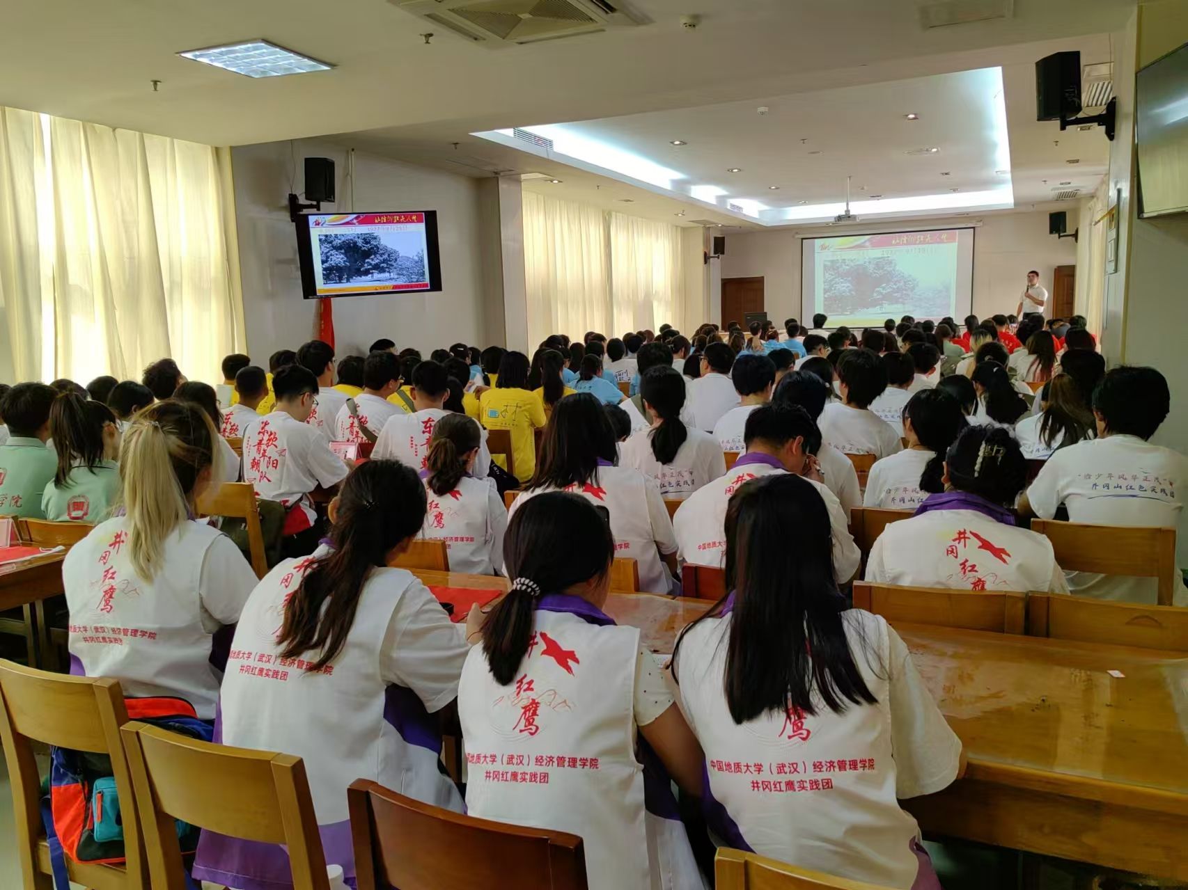 当日下午与晚上,团队聆听“井冈山斗争与井冈山精神”“深刻认识和把握新质战斗力”“青春逢盛世奋斗正当时”为主题的三场讲座,从讲述报告中汲取智慧和氧分,立志传承井冈山精神,学习国防教育知识,以青春之小我融入祖国之大我。