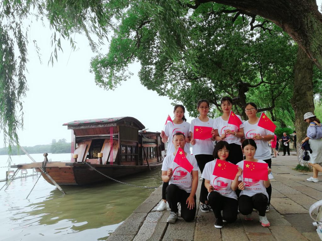 上午9时,分队全体成员抵达南湖景区并乘游船到达湖心岛。湖心岛拥有烟雨楼、御碑亭等典型江南建筑群,但吸引最多游客瞻仰的当属南湖第一地标—红船。1921年7月中下旬,由于在上海的中国共产党成员的行踪暴露,中国共产党第一次全国代表大会最后一天的会议转场到了嘉兴南湖的一艘游船上,在这里宣告了党的诞生,选举出党的领导机构,明确了党成立后的中心任务等。