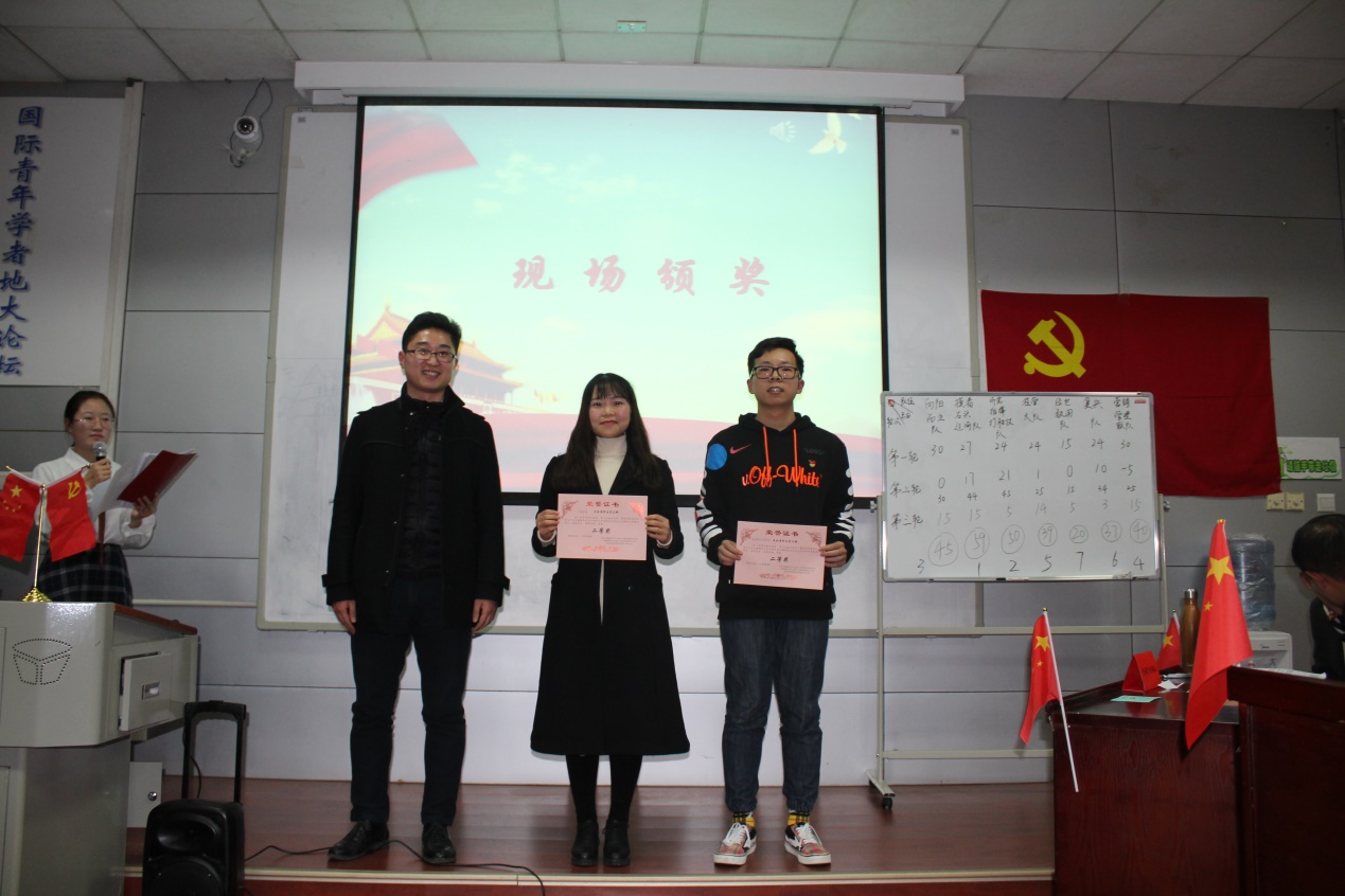 学校党委组织部马洪福老师为获得第二名的队伍颁奖。