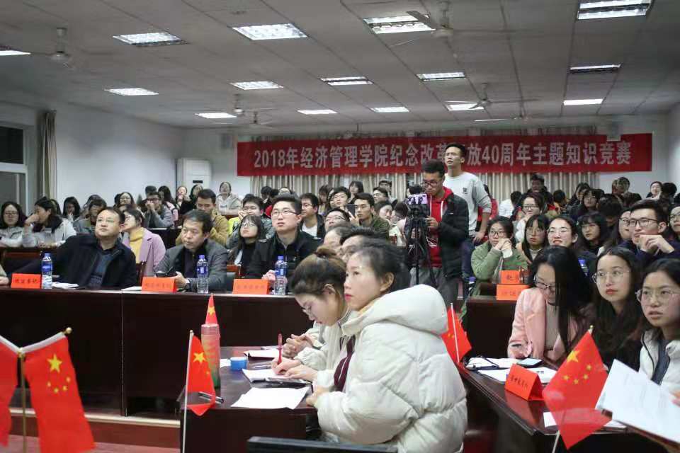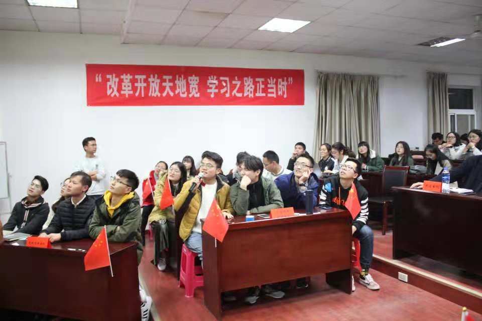 (学院党建办公室:王洁彬)2018年11月22日晚7:00,由羞羞漫画 党委主办、学院党建办公室承办的“改革开放天地宽,学习之路正当时”——纪念改革开放40周年主题知识竞赛活动在MBA楼208室如期举行。出席本次活动的嘉宾有:学院党委书记杨昌锐老师、学校党委组织部马洪福老师、学院党委副书记沈波老师、学院管理科学与工程系教职工党支部书记孙涵老师、学工组全体老师;全体学生党员到场观看学习。