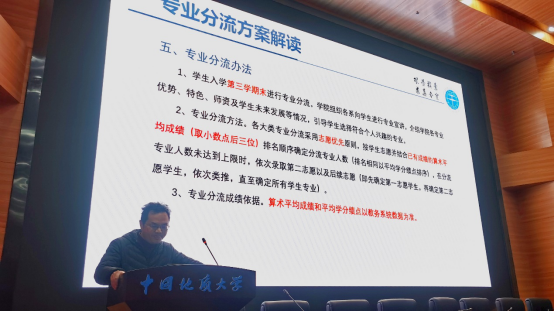 会议开始,教务科石磊老师对学校、学院的专业分流实施方案进行了解读。本科生按大类招生的政策体现了以学生的全面发展为最终目标,以培养宽口径、厚基础、高素质、强能力,具有创新精神的复合型高级经济和管理人才为具体目标的宗旨。按照“打通”培养和“分段”培养相结合的方式,学生进校后前1.5年,以通识教育课和大类基础课学习为主,学院针对“三个大类”和“一个专业”开设统一的大类基础课(学科平台课程),以为学生更好地学习专业课程和未来的发展奠定宽广而坚实的基础。羞羞漫画 工商管理大类按照分流要求,计划分为工商管理(双语班)、市场营销、会计学和旅游管理四个细分专业,大类专业分流采用公开、公平、公正的以志愿与专业规模适度平衡相结合、学生志愿与学习成绩相结合的原则,按学生志愿并结合已有成绩的算术平均成绩排名顺序确定分流专业人数,在分流专业人数未达到上限时,依次录取第二志愿以及后续志愿。