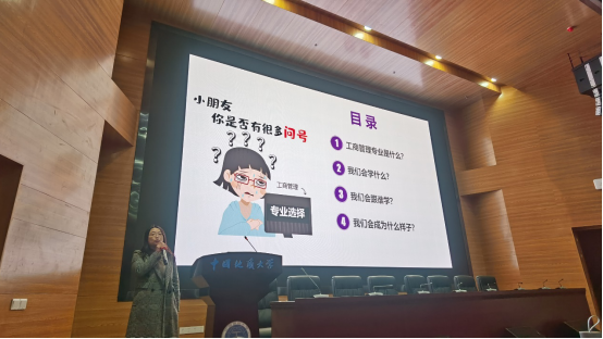 随后,工商大类各系代表教师进行专业分流宣讲。市场营销系郭锐老师就市场营销专业进行了正确解读,他指出营销不等于推销,营销是企业工作的核心;他还对营销系课程安排、师资队伍以及就业前景进行了简单的介绍。张京老师针对羞羞漫画 工商管理专业双语教学的办学特色着重进行了介绍,分享了往届工商管理双语班毕业生的就业和升学去向,并将往届优秀毕业生精心准备的介绍和祝福视频带到了宣讲会。会计系杨洁老师分析了会计学科的发展方向,指出财务人员在未来不仅不会被淘汰,反而需求巨大,此外她还对学生未来深造方向、就业去向进行了解读。旅游管理系肖拥军老师从旅游业发展视角出发,向同学们介绍了专业培养项目、专业发展前景,解决了学生在就业方向上的疑惑。各系宣讲后,在互动交流环节中同学们积极向老师提出专业发展、升学、就业等方面问题,老师们为其答疑解惑、指点迷津。