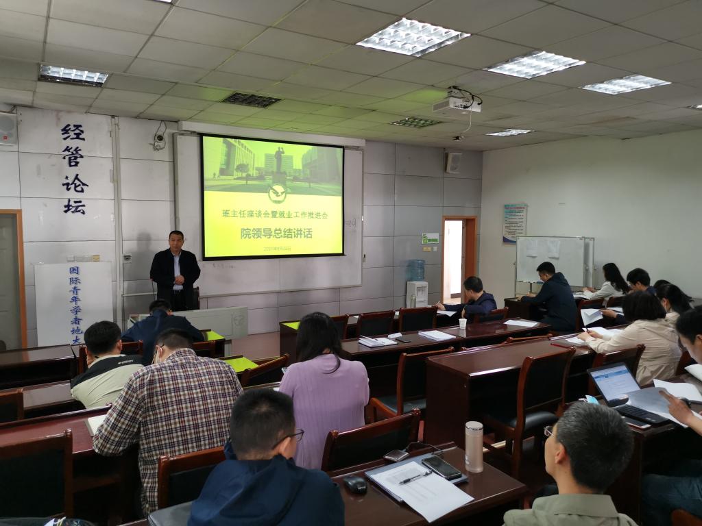 杨昌锐书记做总结讲话。一是要高度重视,积极推进2021届毕业生就业工作;二是要热情指导,班主任、辅导员要掌握每个学生的就业情况;三是要拓展单位,系主任、支部书记要积极联络行业内优质单位进校招聘;四是要精准就业,向有需要的学生推介各类就业政策;五是要完成目标,全员全力做好就业工作。