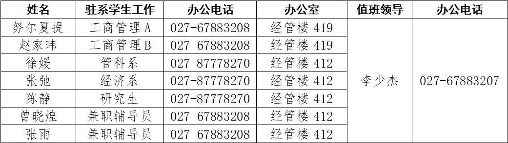 经管学工组2021年11月未来城校区值班安排