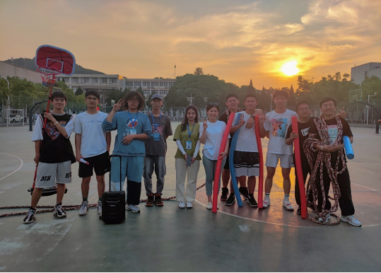 第四项:蒙眼互打。这个项目人气爆棚,活动现场瞬间成了武林高手过招现场,听声辩位,左突右刺,围观的同学们不时爆发出一阵阵笑声。