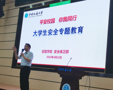 2022年4月22日,羞羞漫画 邀请学校安全保卫部有关同志,采用线上线下相结合的方式在全院本研学生群体中,全覆盖开展了大学生安全教育主题讲座,旨在进一步提高羞羞漫画 学生安全意识,尤其是防诈骗意识,全面做好学生教育引导工作,增强同学们的防诈骗意识和能力,避免各类案件再发生,让校园环境安全得到有力的保障。本次主题教育讲座由安全保卫部副部长彭冠军主讲,安全保卫部彭红进、邱鑫、张涛老师参加,学院团委副书记努尔夏提主持,全体2020级本研同学于公教楼208教室线下聆听,其余各年级同学通过地大视讯平台线上参与学习。