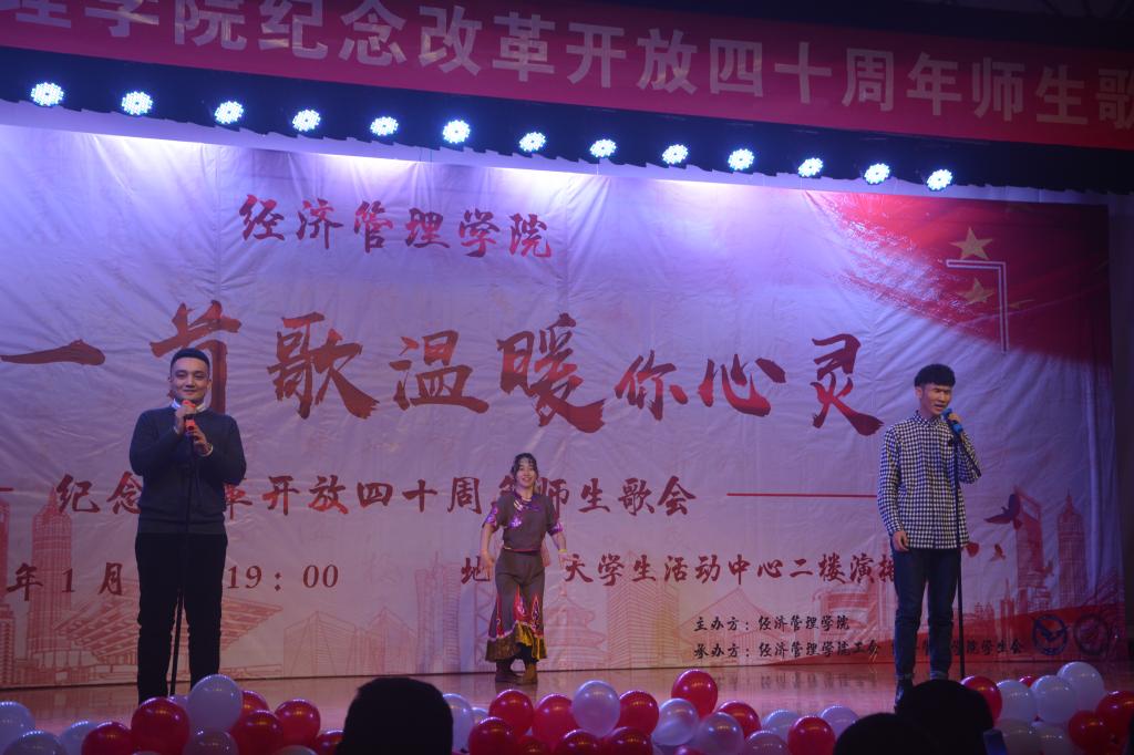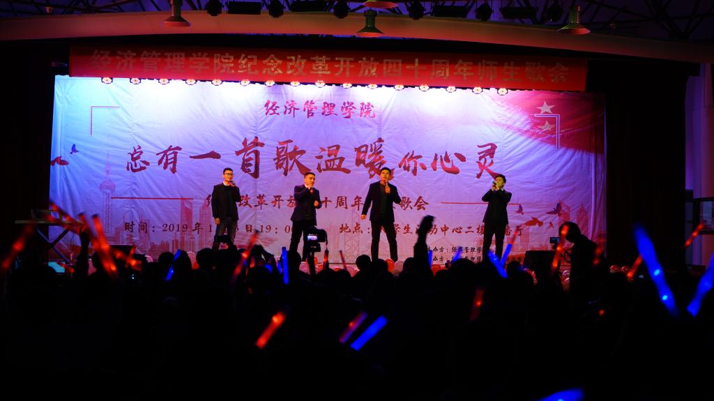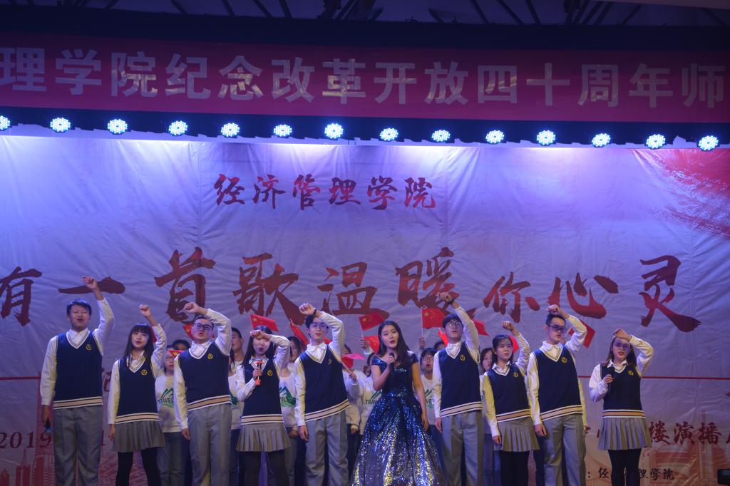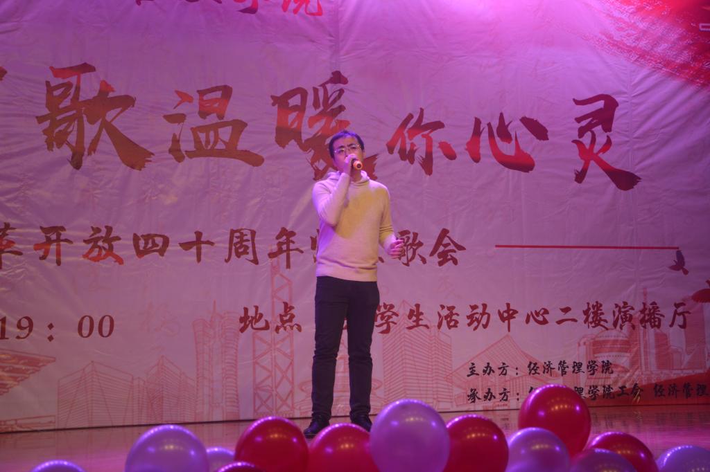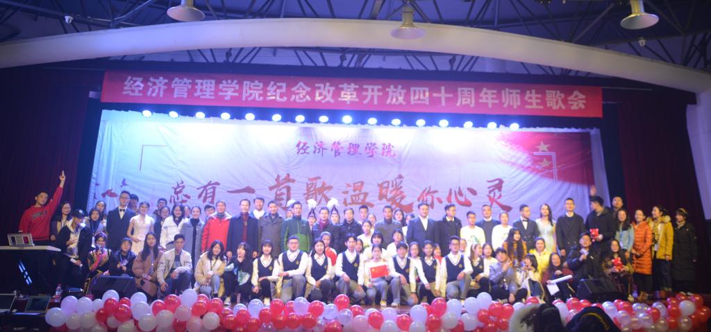 本次歌会分为“春回大地”“激情岁月”“乘风破浪”“继往开来”四个篇章,以歌曲的形式纪念了改革开放走过的极不平凡的四十年,用最温情的方式增进了师生间的感情,拉近了师生间的距离,每一首精心准备、深情演唱的歌曲都表达了经管人对党和祖国的热爱。歌会结束后,参加歌会的2017级本科生张康激动地说;“第一次看到这么多自己的老师上台表演,气氛真的很活跃。感谢这场歌会让我们多对讲台下的老师有了更多的了解,祝福学院越来越好,也祝福祖国改革开放的道路越走越宽广!”