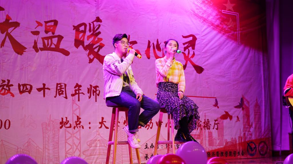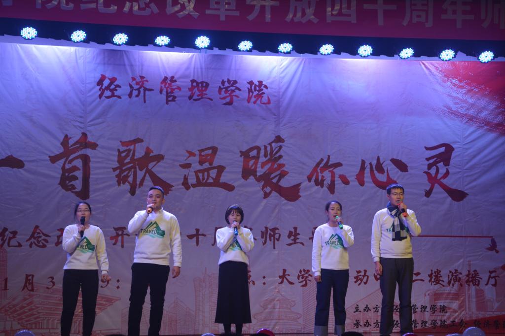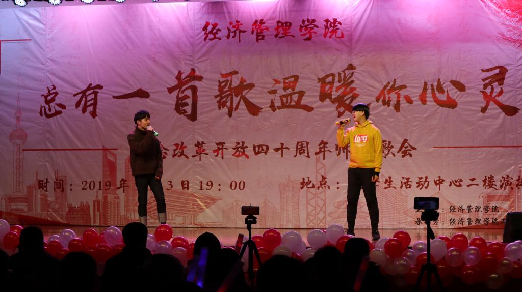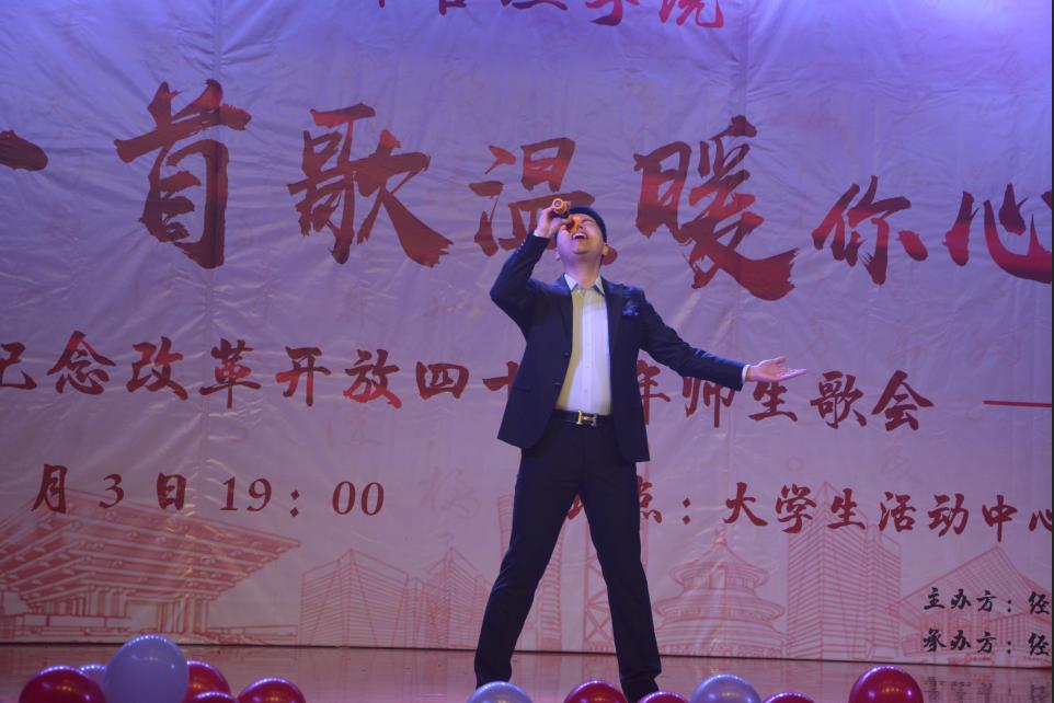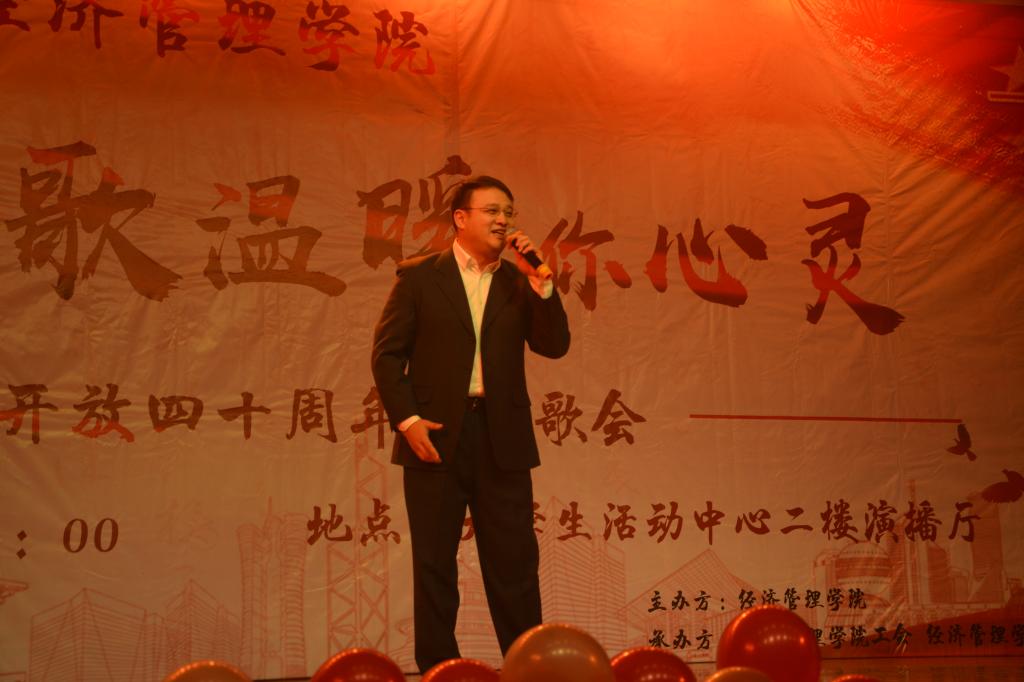 本次歌会分为“春回大地”“激情岁月”“乘风破浪”“继往开来”四个篇章,以歌曲的形式纪念了改革开放走过的极不平凡的四十年,用最温情的方式增进了师生间的感情,拉近了师生间的距离,每一首精心准备、深情演唱的歌曲都表达了经管人对党和祖国的热爱。歌会结束后,参加歌会的2017级本科生张康激动地说;“第一次看到这么多自己的老师上台表演,气氛真的很活跃。感谢这场歌会让我们多对讲台下的老师有了更多的了解,祝福学院越来越好,也祝福祖国改革开放的道路越走越宽广!”