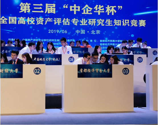 在半决赛和决赛会场,全国资产评估专业学位研究生教育指导委员会秘书长、中央财经大学副校长马海涛教授、全国资产评估协会副秘书长杨松堂博士、首都经济贸易大学副校长王传生教授、厦门大学纪益成教授和东北财经大学姜楠教授分别致辞,北京中企华资产评估有限责任公司总裁刘登清博士和中南财经政法大学汪海粟教授对本次知识竞赛进行了点评。中联资产评估集团、北京中企华资产评估、银信资产评估、中和资产评估、中水致远资产评估、开元资产评估等公司和北京市资产评估协会的评估实务界专家作为评委出席了本次知识竞赛。