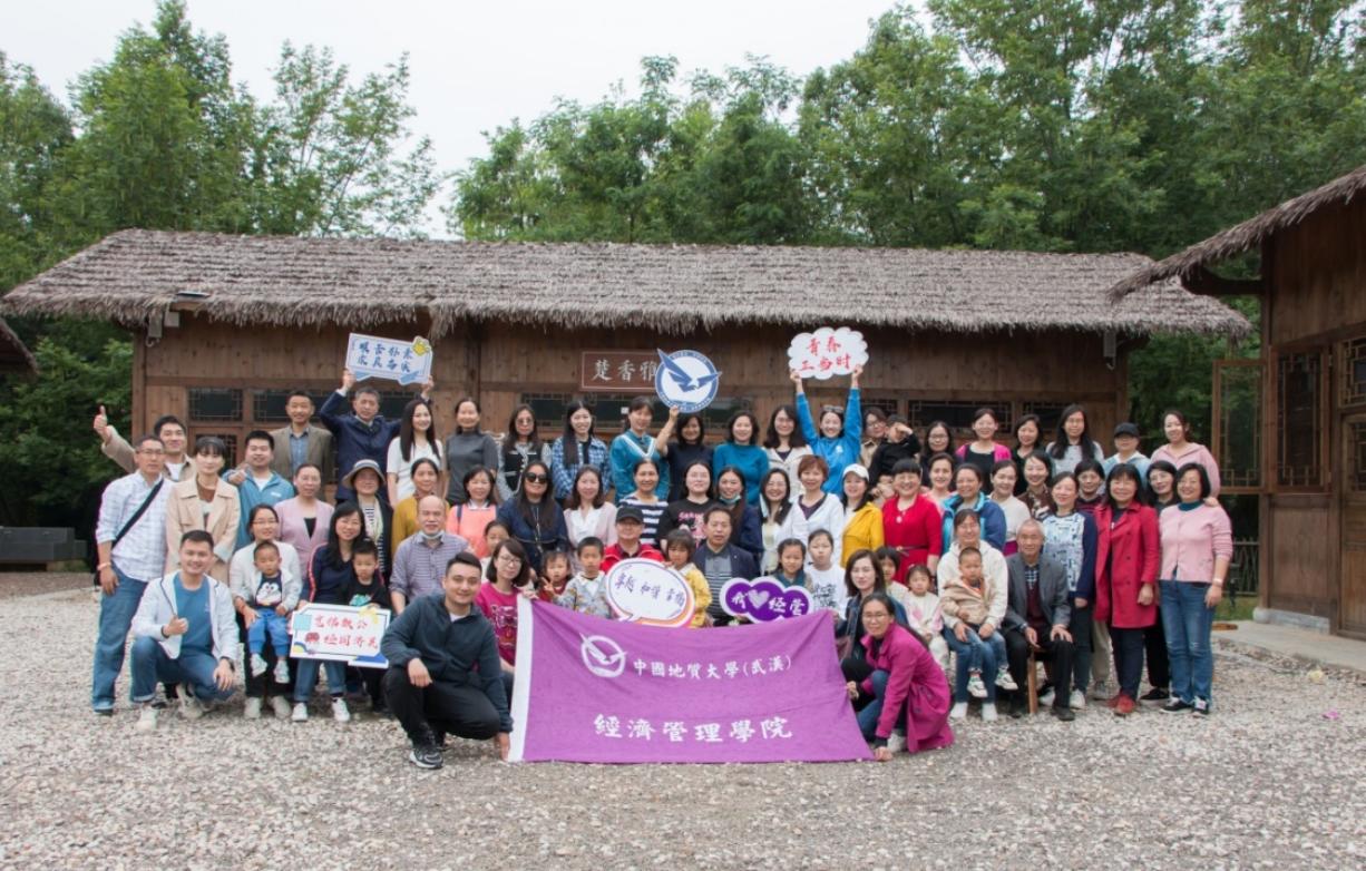 亮出“艰苦朴素,求真务实”“宽信敏公,经国济民”校训院训,高举经鹰院徽和“卓越,和谐,幸福”“青春正当时”的手持牌,一行七十余人在园内楚香雅集门前留下幸福欢乐的大合影。