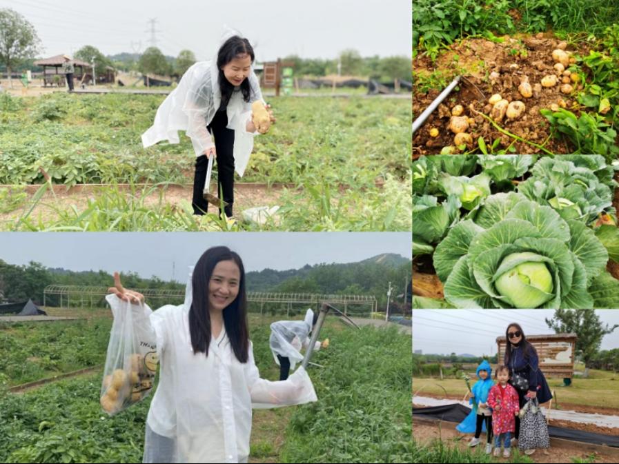 活动的最后,大家在生态田园割春韭、挖土豆、采包菜,带上顺应农时的应季蔬菜而归。