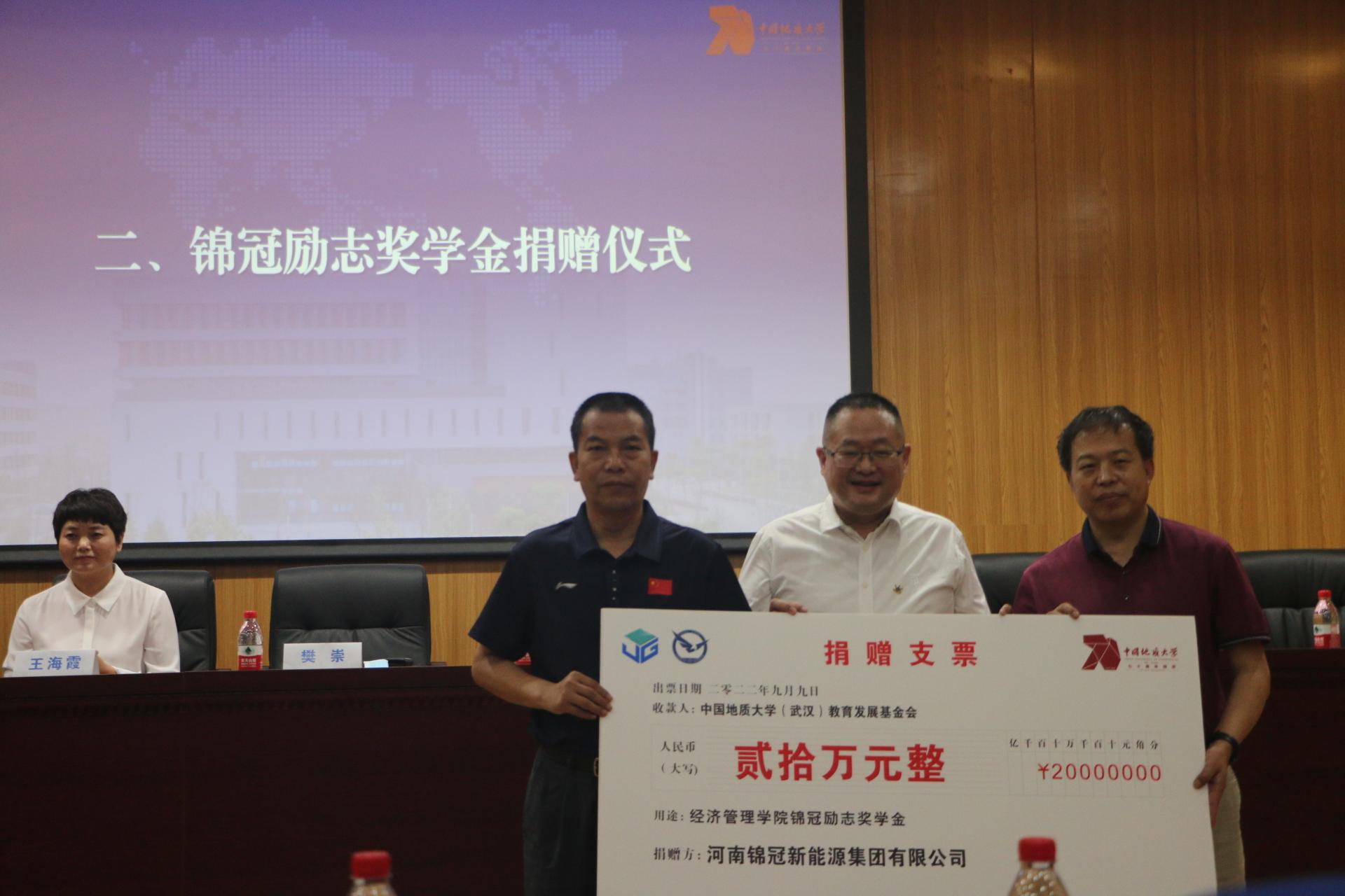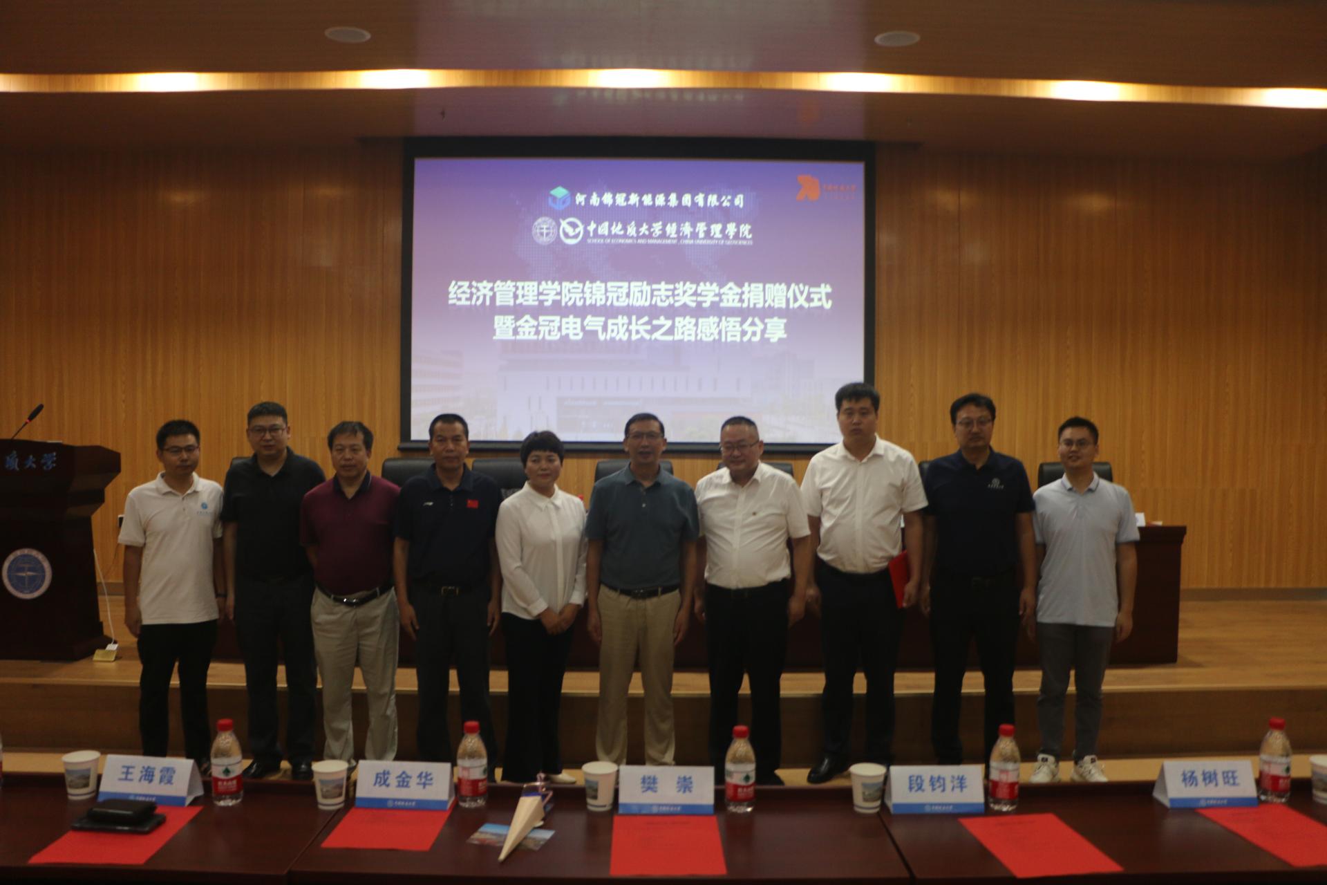 (通讯员 高婧珂)9月9日上午,羞羞漫画 “锦冠励志奖学金”捐赠仪。会议由学校原校党委副书记、纪委书记成金华教授主持。羞羞漫画 客座教授、河南锦冠新能源集团有限公司总裁、金冠电气股份有限公司董事长兼总经理樊崇向经管学院捐赠善款并致辞;金冠电气副总裁王海霞、人力资源经理段均洋及经管学院、自动化学院及校友与社会合作处负责同志参加了本次活动。
