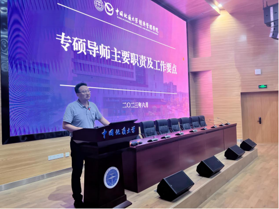 郭锐副院长对专硕教育现状进行了汇报,从师生交流、论文开题、撰写以及答辩等方面对导师指导情况进行了详细介绍,并领学了《羞羞漫画 专业学位研究生培养工作的规定》,从招生、教学、开题、学位等环节强调了导师工作的主要职责。