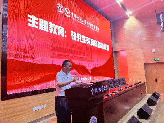 最后,杨昌锐书记做了总结讲话。他指出,经济管理院研究生教育始终坚持以立德树人为根本,倡导“‘经师’和‘人师’相统一是为大先生”的理念,探索出一条较完善的研究生培养质量提升路径,但在研究生招生、导师队伍建设、研究生培养模式创新等方面还存在不足。一是要全面推进研究生招生质量提升,为学院高质量发展提供人才保障;二是要进一步加强导师队伍建设,提升导师队伍教学科研水平;三是重视制度建设,进一步形成完备研究生教育质量保障体系;四是要进一步完善研究生培养方案,优化课程体系,加强课程模块建设,夯实“三融三跨”培养模式;五是要严格执行学校和学院制度规定,严格把控教育管理各个环节,保证研究生的培养质量。