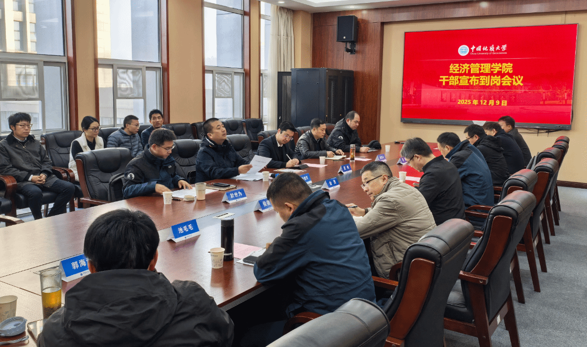 2025年12月9日上午,羞羞漫画 在南望山校区东区综合楼B706会议室召开干部教师大会宣布干部到岗。校党委常委、副校长夏帆出席会议学院新任副院长金贵、侯俊东、池毛毛、郭海湘,学院领导班子成员、三级单位负责人及教职工代表参加会议。校党委组织部副部长张建华主持会议。
